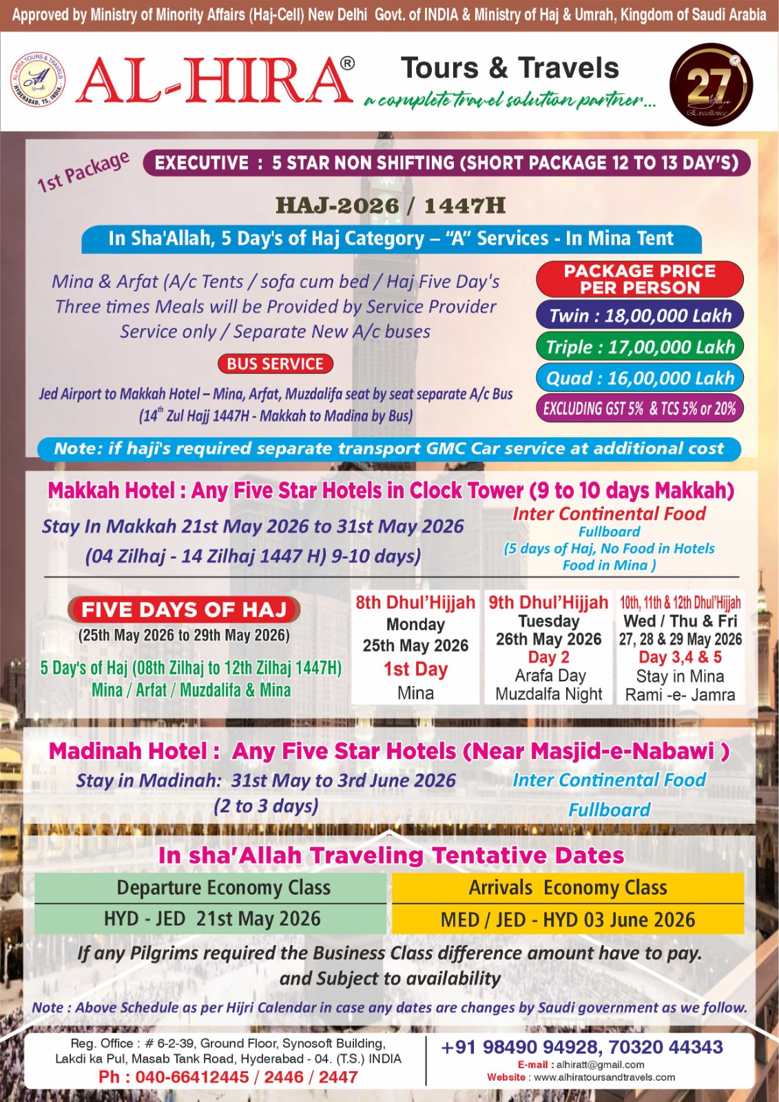 In Sha`Allah, 5 Day’s of Haj Category – “A” Services – In Mina Tent