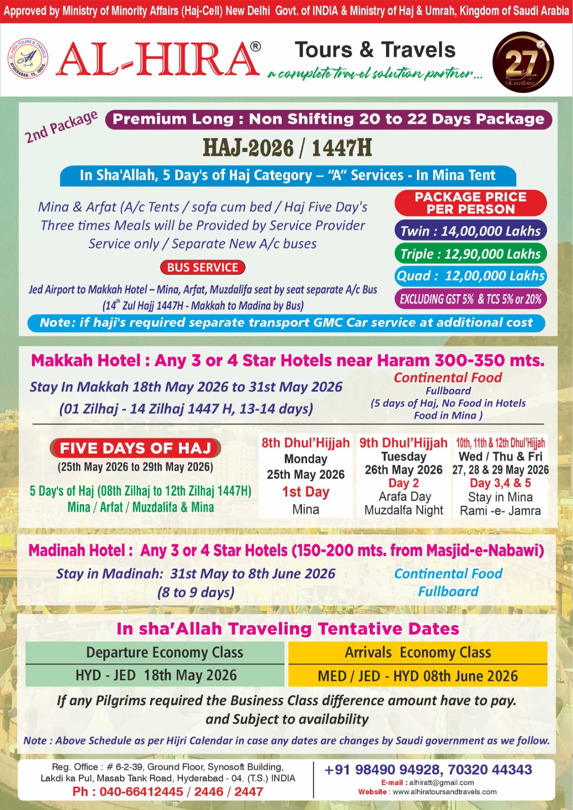 In Sha`Allah, 5 Day’s of Haj Category – “A” Services – In Mina Tent